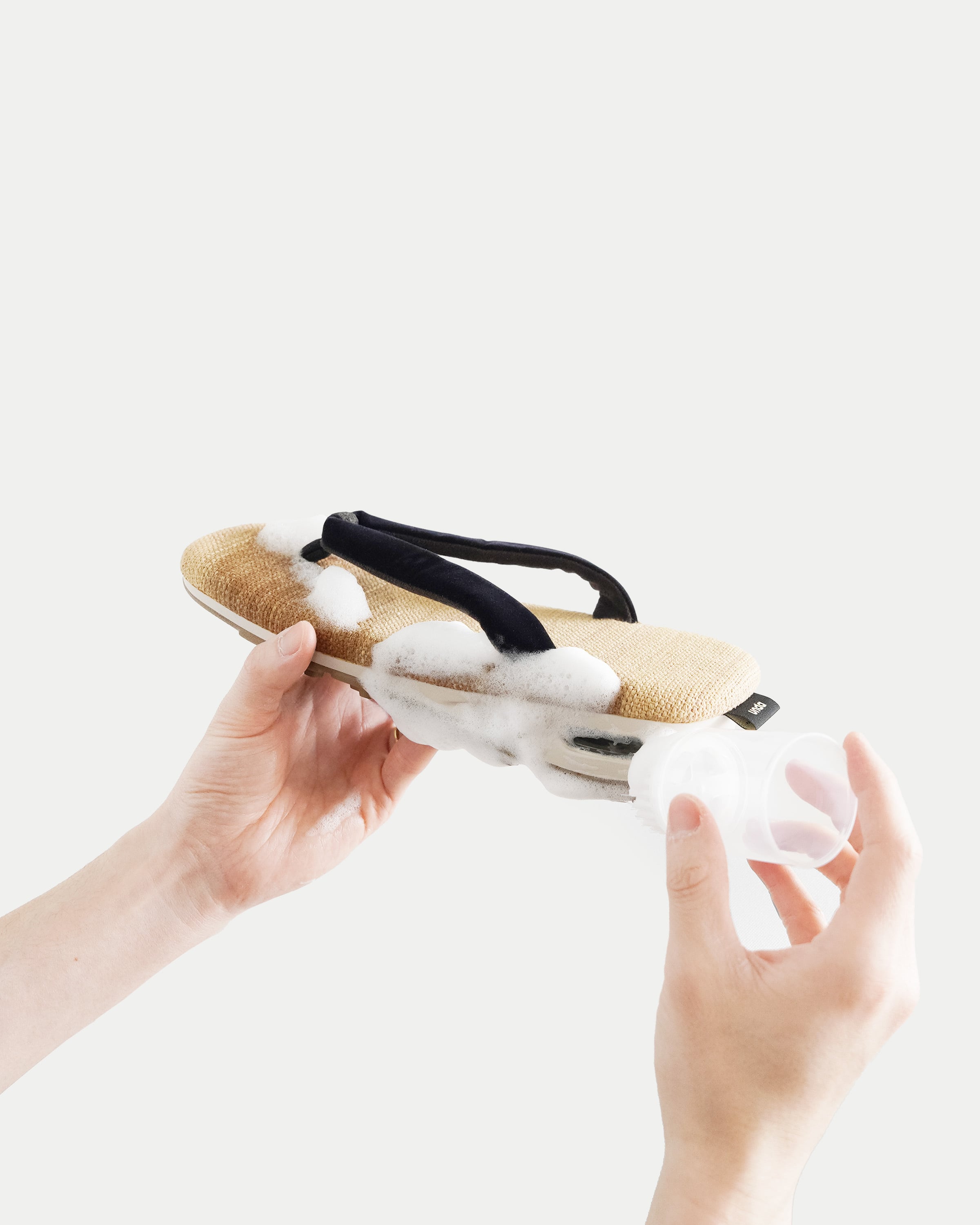 キャップとブラシ一体型でスペースを取ることはありません。undaをきめ細やかなフォームで包み込み、優しくブラッシングすることで、汚れを浮かせて落とします。