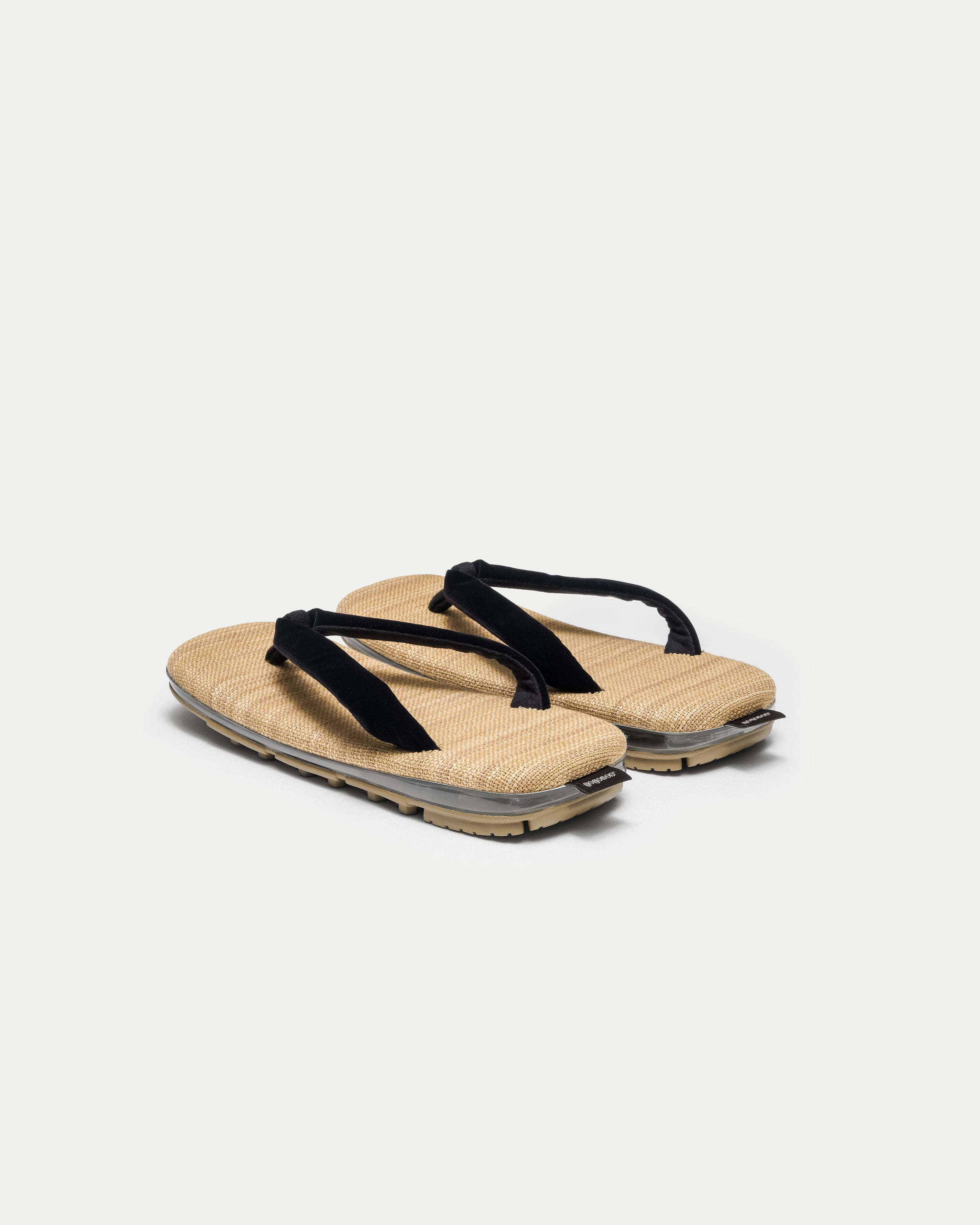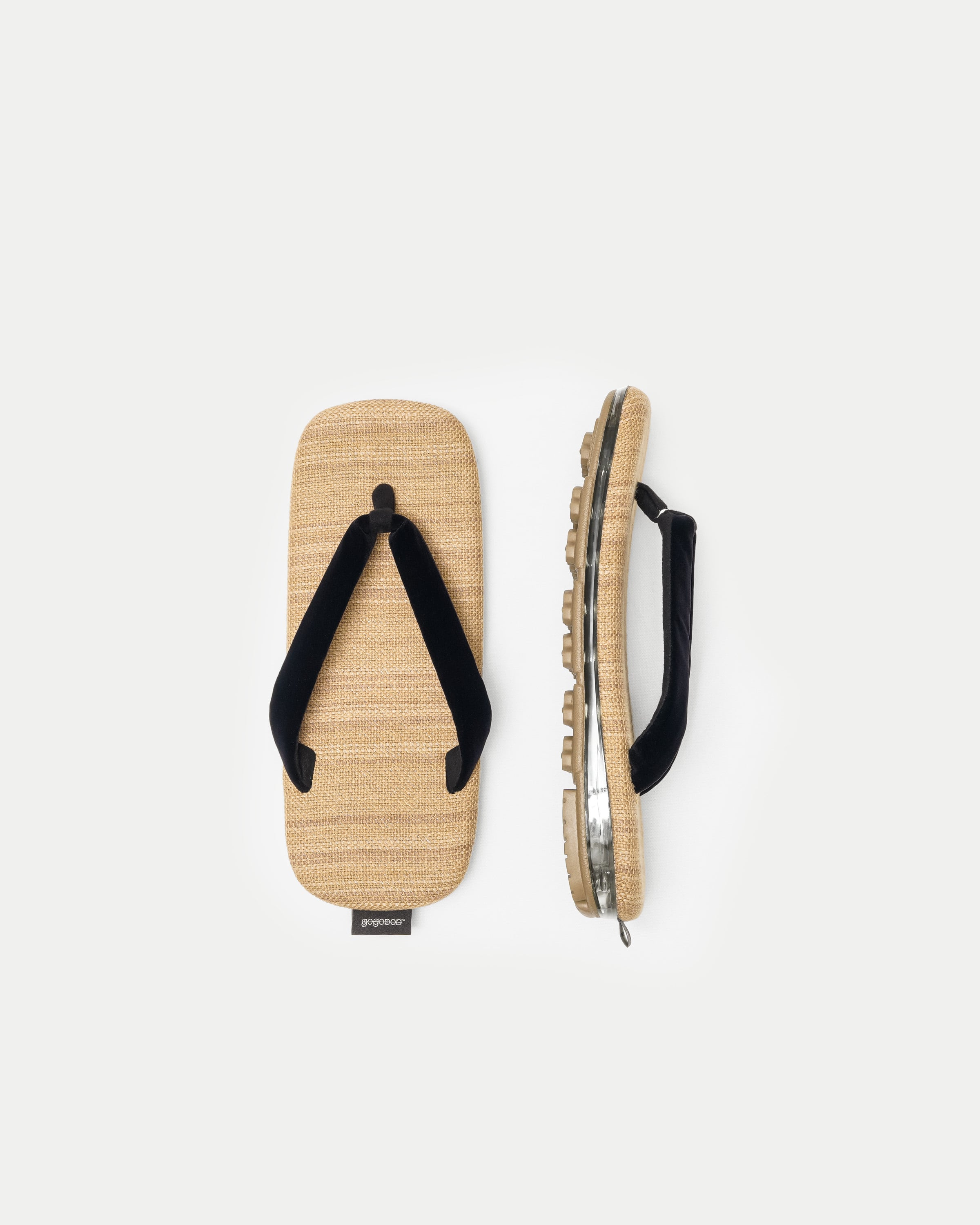 goyemonが新たに開発した「薄型フルレングスエアーソール」を搭載した、革新の雪駄スニーカー。足裏全体に均一なクッション性をもたらすエア構造を採用しつつ、ソールの厚みを抑えることで、より雪駄らしい佇まいと軽やかな履き心地を実現しました。