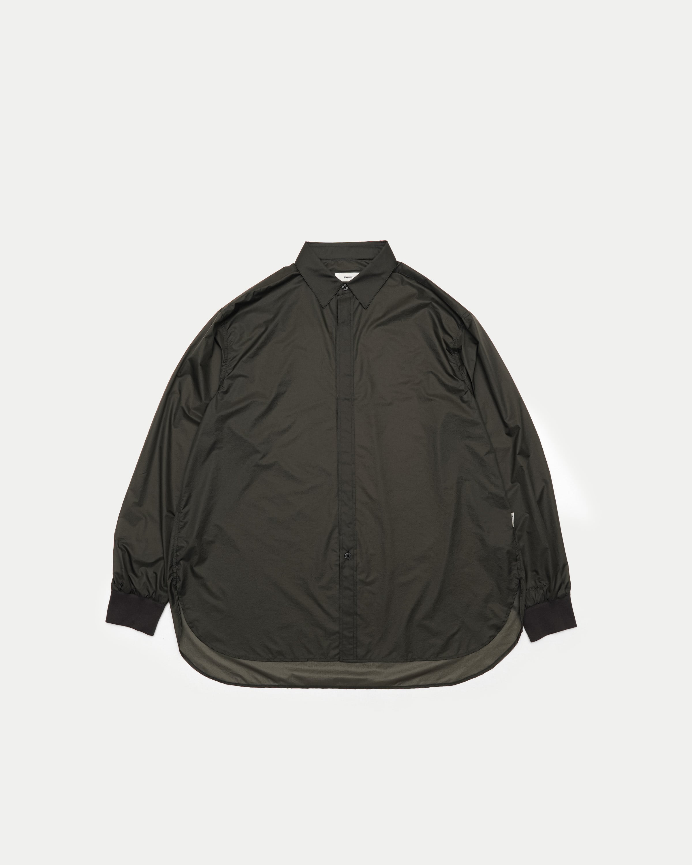 レギュラーカラーシャツをクリエイターに向けに再設計。クイックに袖をまくれる様シャツだけどリブ仕様に。肩の可動域を制限しないようアームホールは大きめで肩傾斜を低く、身幅は広く設定しました。日本製オリジナルボディ。脇にはピスネーム。袖口には同色の刺繍が配されています。
