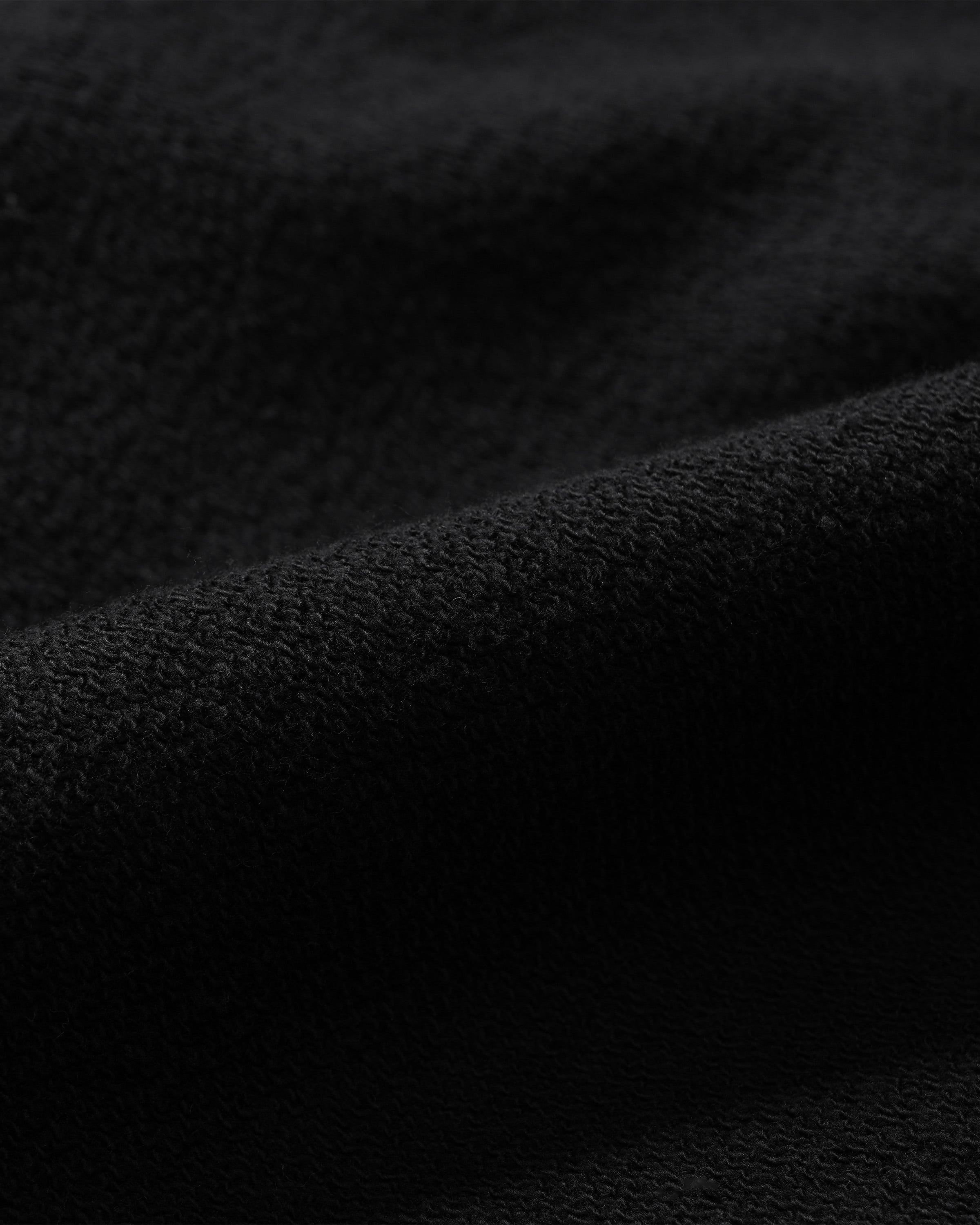 エルボーパッチではなくリストパッチ仕様。狩猟で銃を構える際にヒジまわりの擦り切れを防ぐ補強のためのディテールをクリエイター向けに落とし込み、デスクワークなどの作業で最も消耗するであろう手首まわりにラバープリントで補強を施した。日本製オリジナルボディ。裾にはロゴのピスネームを配しています。