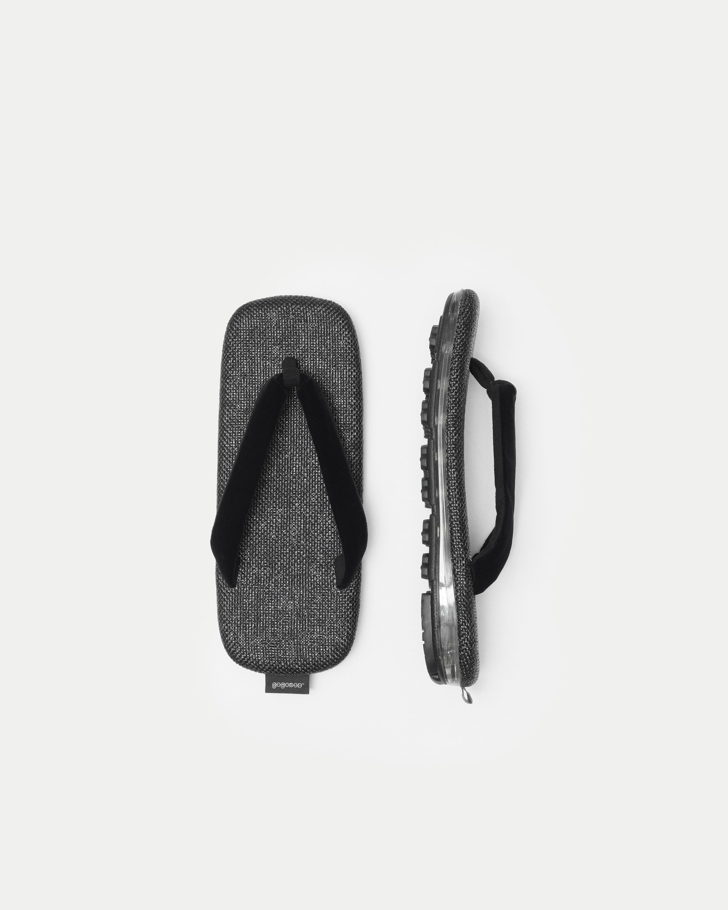 goyemonが新たに開発した「薄型フルレングスエアーソール」を搭載した、革新の雪駄スニーカー。足裏全体に均一なクッション性をもたらすエア構造を採用しつつ、ソールの厚みを抑えることで、より雪駄らしい佇まいと軽やかな履き心地を実現しました。