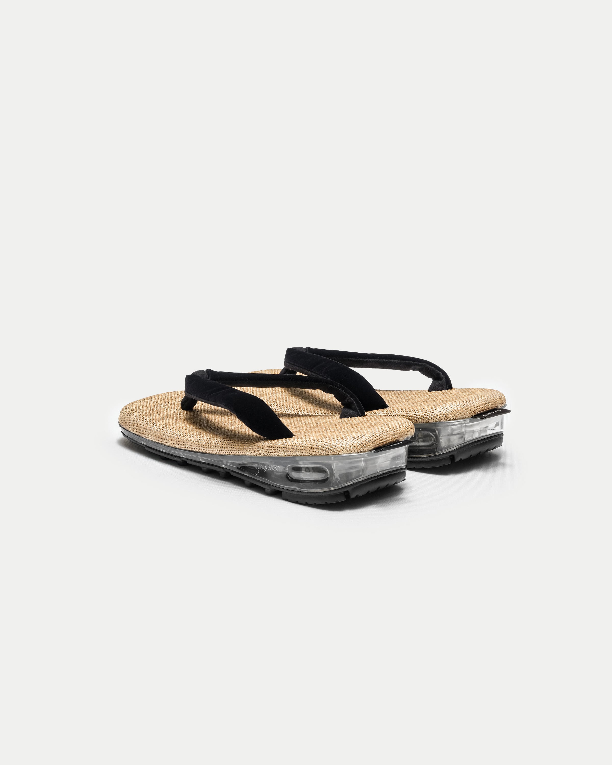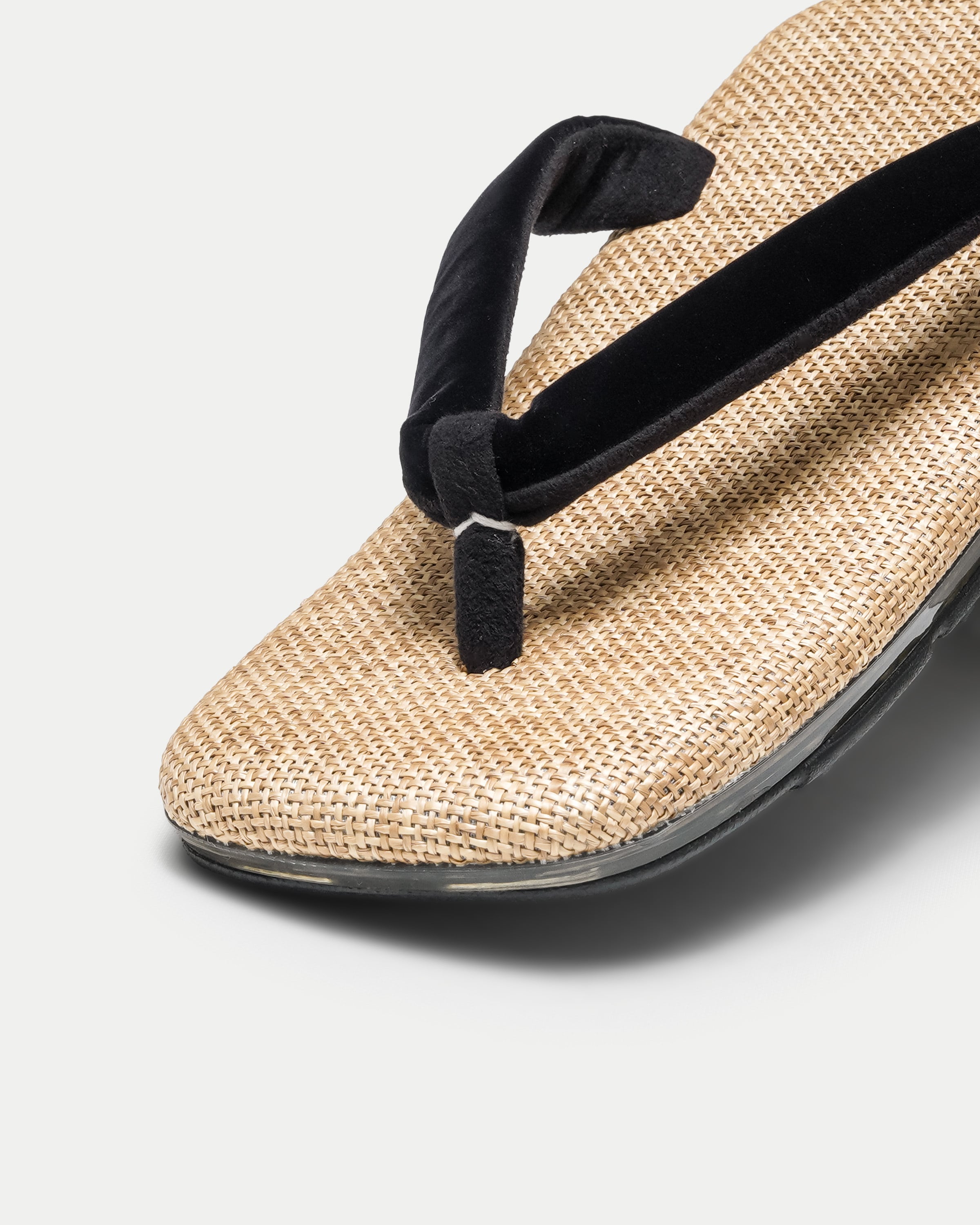 本作は、伝統的なビロード生地の鼻緒を採用したスタンダードなモデル(BLACK / SUMI)に加え、ボリュームのある鼻緒が足をやさしく包み込むPADDEDモデル(BLACK / SUMI)の全4種がラインナップ。