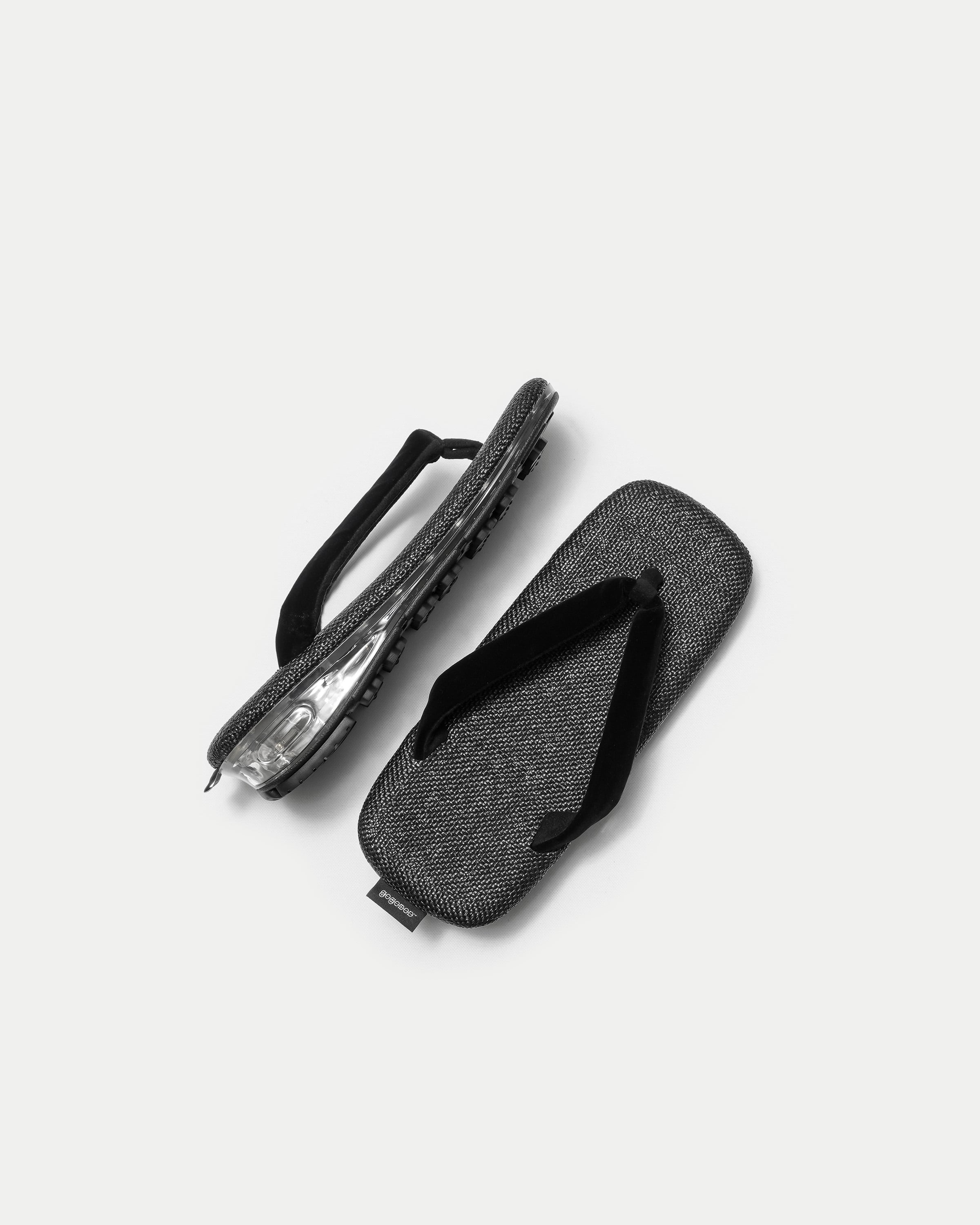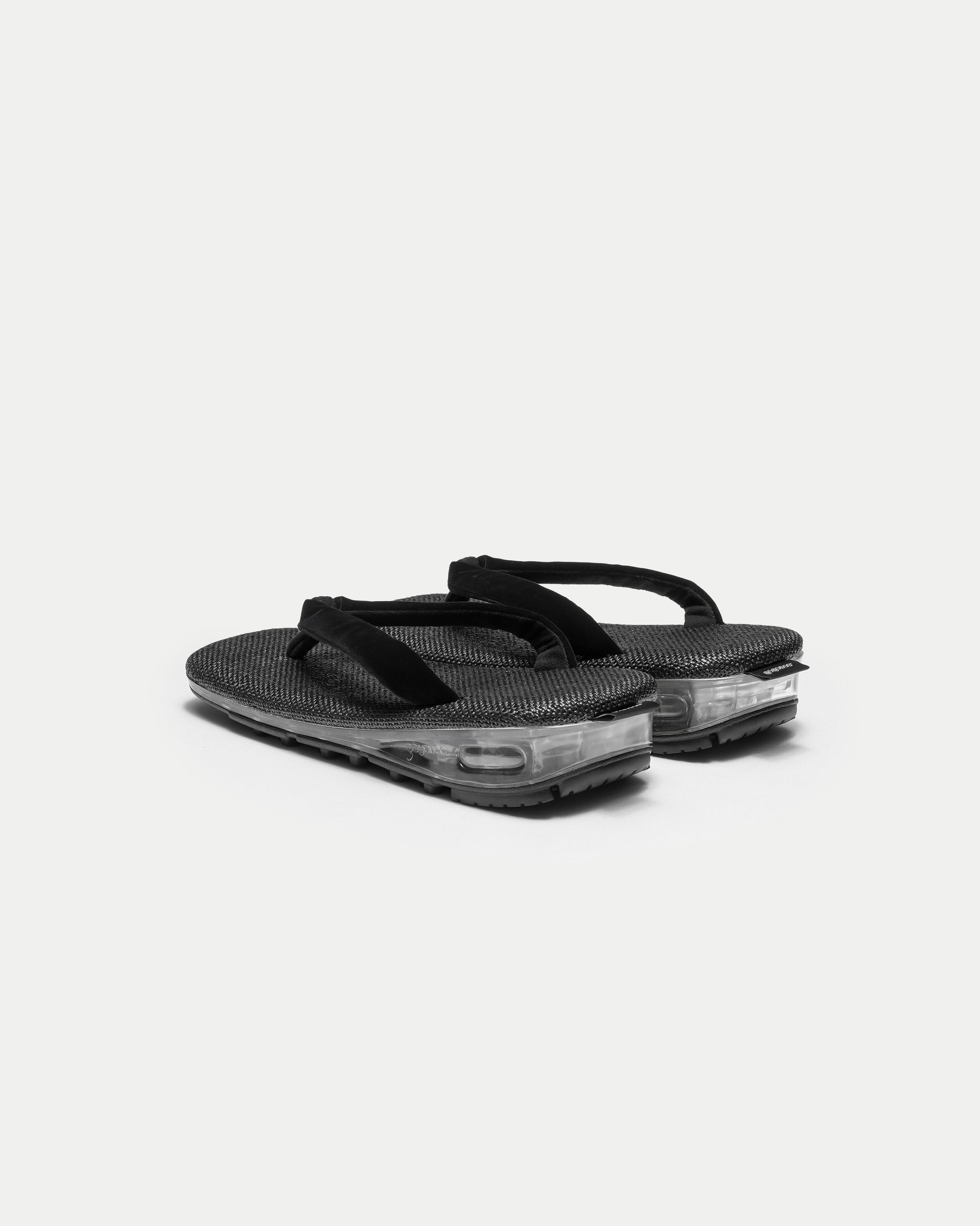本作は、伝統的なビロード生地の鼻緒を採用したスタンダードなモデル(BLACK / SUMI)に加え、ボリュームのある鼻緒が足をやさしく包み込むPADDEDモデル(BLACK / SUMI)の全4種がラインナップ。