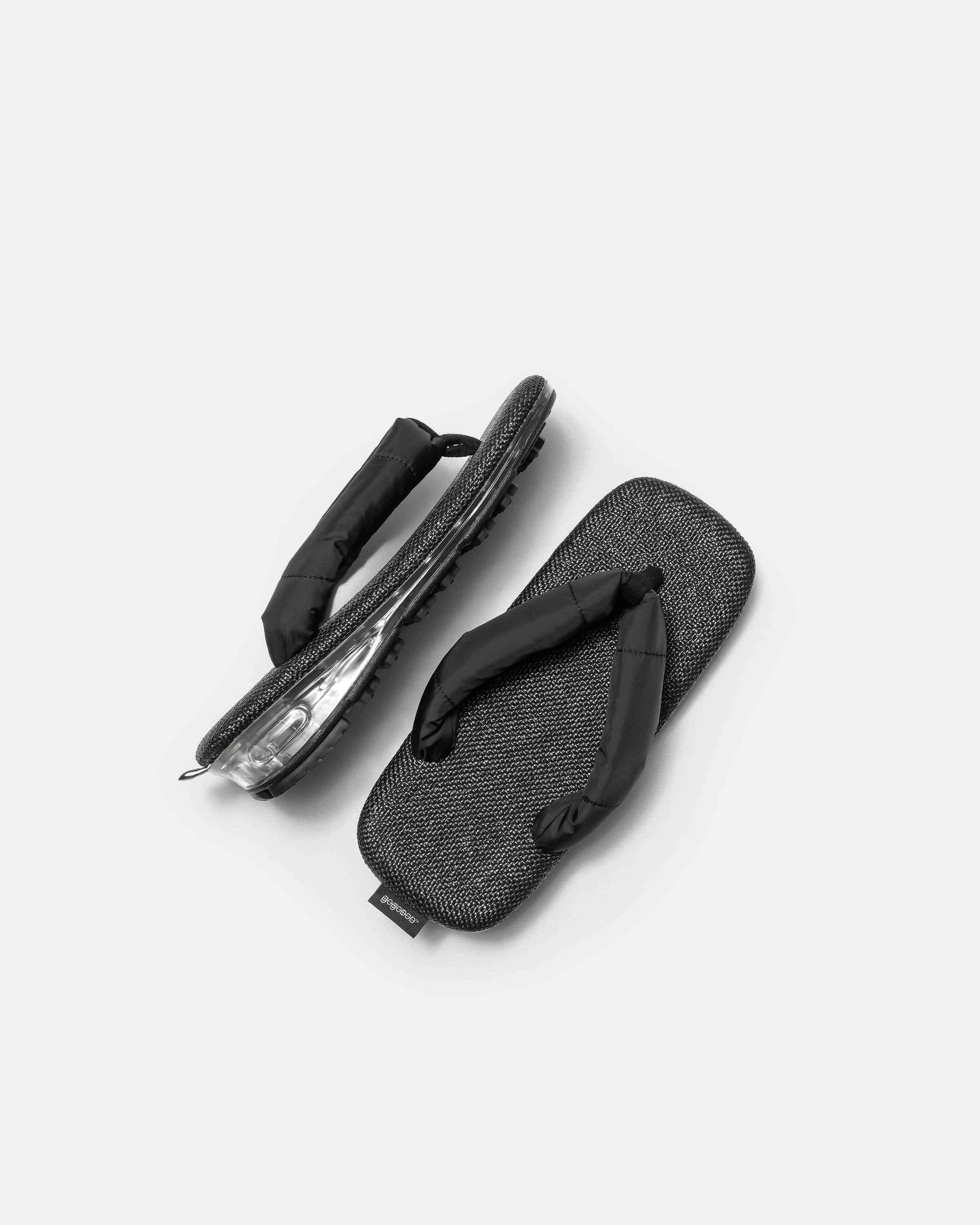本作は、伝統的なビロード生地の鼻緒を採用したスタンダードなモデル(BLACK / SUMI)に加え、ボリュームのある鼻緒が足をやさしく包み込むPADDEDモデル(BLACK / SUMI)の全4種がラインナップ。